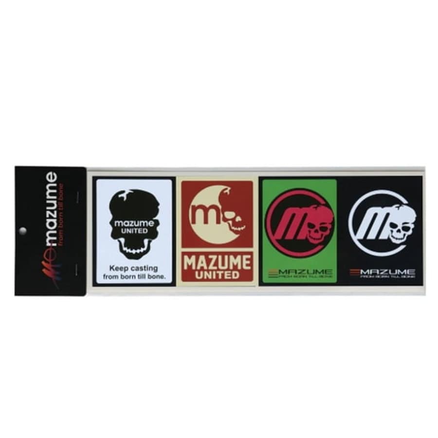 mazumeのトレードマークのスカルを4種類あしらったNEWデザイン。貼れば即座にmazume仕様!!クーラーやドカット、ルアーケースのカスタマイズにおススメです。★サイズ:縦9.2cm、横6.7cm(1枚のサイズ)
