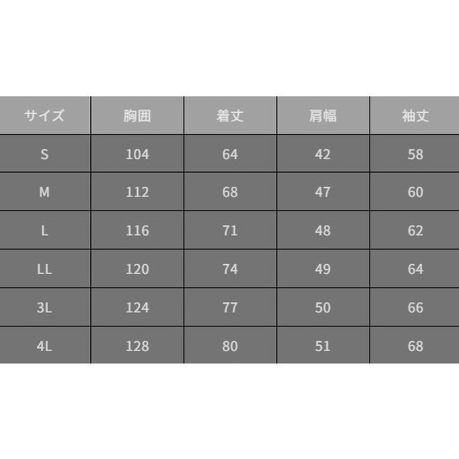 サイズ:3L(胸囲124cm、着丈77cm、肩幅50cm、袖丈66cm)