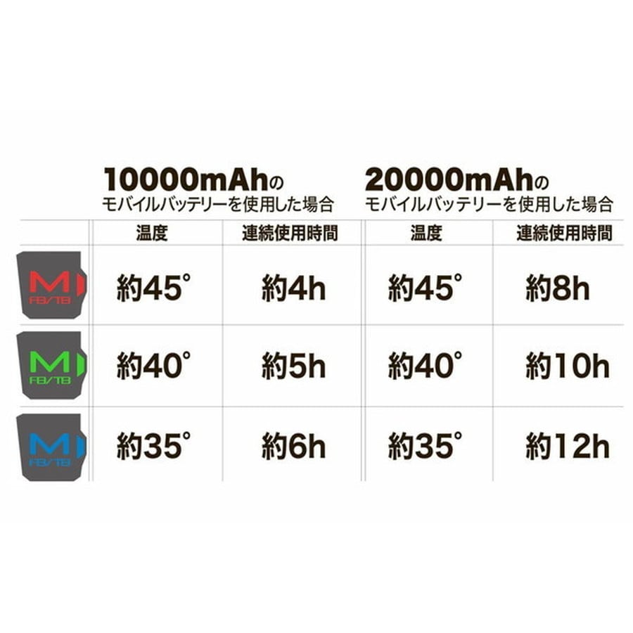 ※モバイルバッテリーは別売りです。日中温かい時間帯にスイッチを切れば、10000mAhで十分持ちますが、夜通し釣りをする方や極寒の中で釣りをされる方には20000mAhのバッテリーをお勧めいたします。