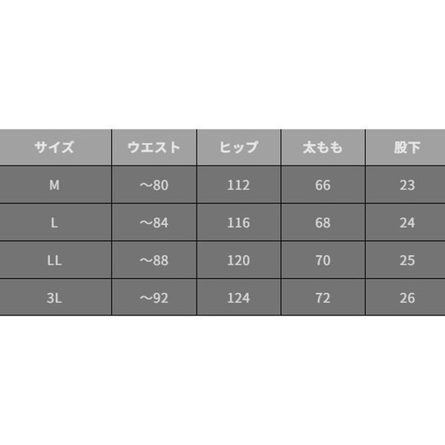 サイズ:3L(ウエスト~92cm、ヒップ124cm、太もも72cm、股下26cm)
