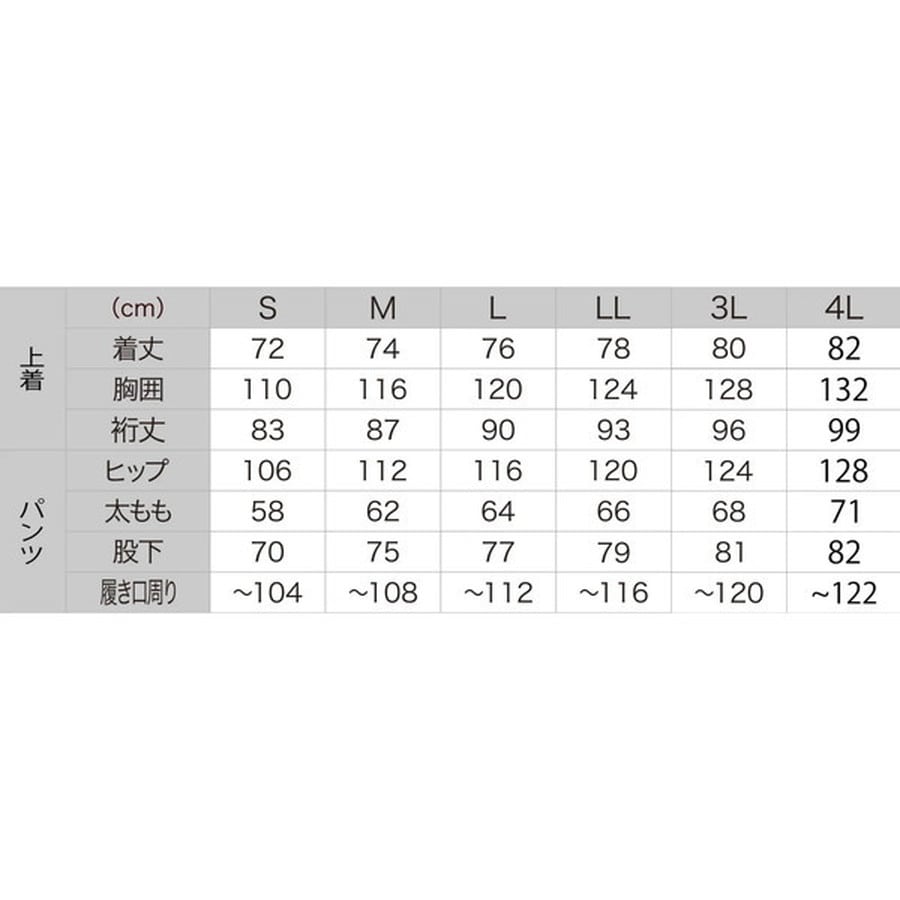 サイズ:3L(着丈80cm、胸囲128cm、裄丈96cm、ヒップ124cm、太もも68cm、股下81cm、履き口周り~120cm)