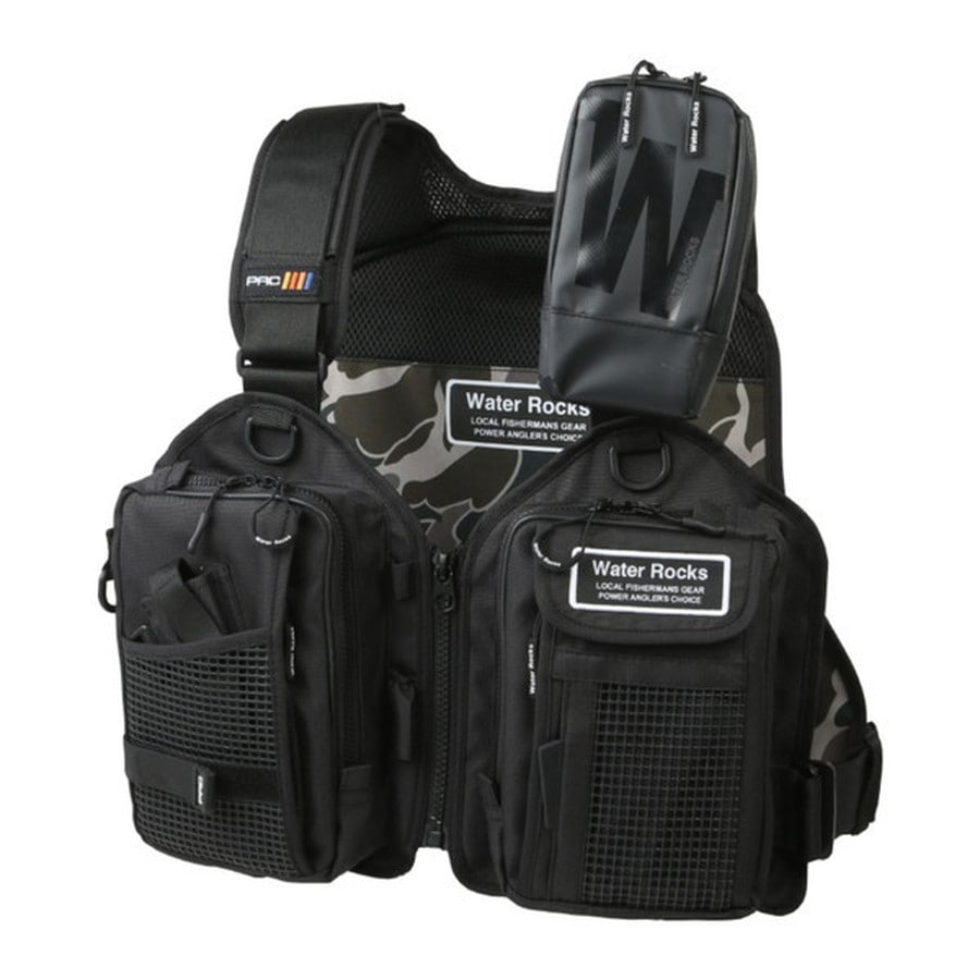 浮力材の無いゲームベストは非常にライトで、「チョッキ」的な感覚です。用途は様々で渓流からチヌの落とし込みまで多機能です。十分な収納力もあり、幅広く対応できる汎用性の高いフィッシングベストです。救命具は、ウエストタイプのインフレータブルを使用します。