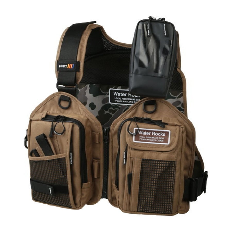 浮力材の無いゲームベストは非常にライトで、「チョッキ」的な感覚です。用途は様々で渓流からチヌの落とし込みまで多機能です。十分な収納力もあり、幅広く対応できる汎用性の高いフィッシングベストです。救命具は、ウエストタイプのインフレータブルを使用します。