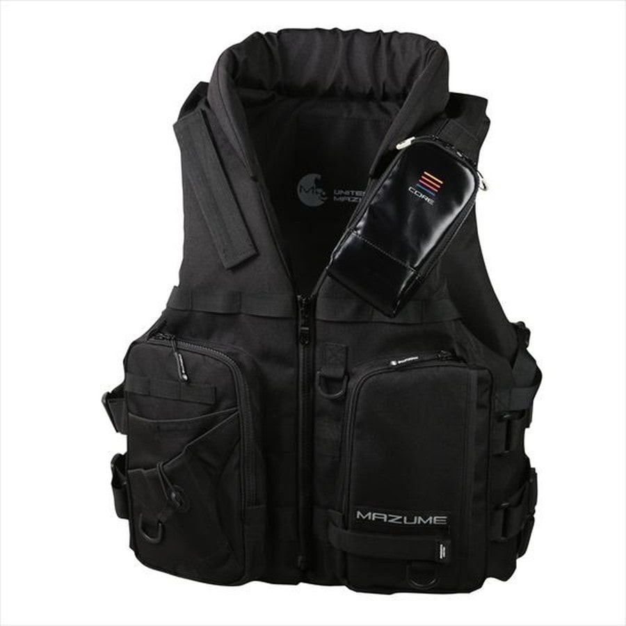 ライトソルト、バスアングラーが手ぶらでも使える収納力とライジャケらしい頑丈なつくり。フロントポケットに定番のルアーボックスのMEIHO3010が左右に入り、ルアーフィッシングをサポートします。付属の薄型ショルダーポーチはiPhone14pro MAXがケース付きで入るサイズ感です(取り外し可能)。プライヤーホルダーも装備。特筆すべきは、本製品にもウエストハーネスシステムを採用していること。システムは、着用後にセンターバックルとファスナーをしてから、両サイドのストラップを引き、フィットさせるという簡単な手順で設定OKです。さらに脇の下にあるチェストハーネスも同じようにサイドストラップを引いてフィットさせ、ダブルでフィット。より安全性と着やすさを追求しているモデルです。