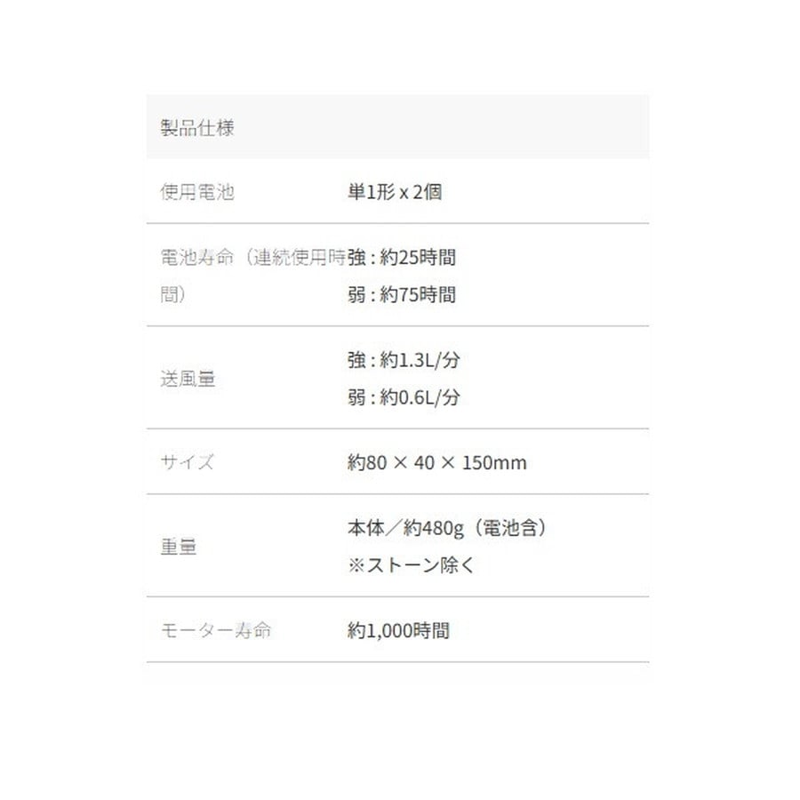 電池寿命(連続使用時間):強 : 約25時間 弱 : 約75時間