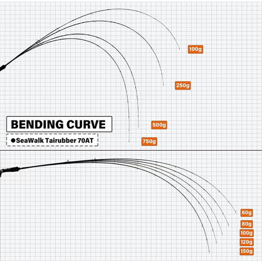 2023年、シーウォーク・タイラバシリーズは全く新しい設計とコンセプトにより生まれ変わります。日本近海のマダイというターゲットは様々な釣法が存在し、タイラバ(カブラ)に限っても四季折々のパターン、海域による特性も大きく影響し、お手軽な狙い方から極端に細分化した高度な攻略まで、非常に奥の深いゲームスタイルです。70ATは、タイラバの王道となる"乗せスタイル"に必要な性能を磨き上げた1本で、幅広い水深とルアーウェイトに対応するシリーズの基本となるモデルです。※70AT・611Dの2機種はグリップジョイント仕様となり、ロッド全体で曲がりつつもバットがしっかりと残りますので、深場や潮流場でも楽に寄せることができます。