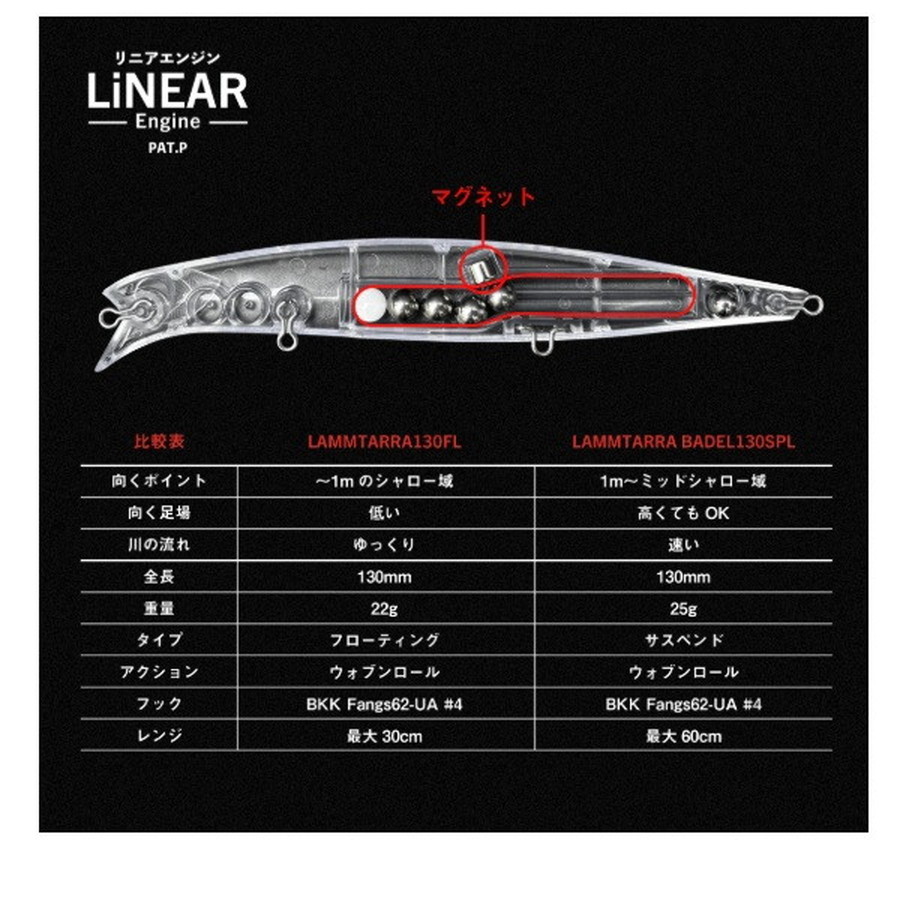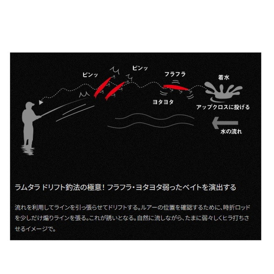 「元祖ドリフトミノー」として各地で数々の大型シーバスを仕留め、圧倒的な実績を積み重ねてきたラムタラ。このルアーがランカーシーバスを刺激する理想的なアクションを生み出すのはデッドスロ~スロー域のリーリングスピード。ブルブルと動いているのがはっきり手元に伝わっている状態は巻きすぎのサイン。張らず緩めずのテンション「必要最低限の引き抵抗」をキープすることがキモとなります。時代の変化、技術の進化で変貌を遂げた「神の見えざる手」が新時代を凌駕する。●弱々しく揺らぐウォブンロールがランカーシーバスを刺激。●重心移動システム「リニアエンジン」搭載で大幅に飛距離UP。●流れを確実に掴むハイレスポンス設計。