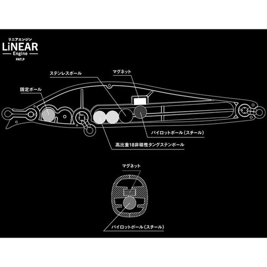 小型ベイトを捕食するタイミングで有効となる。巻いて良し、ロッドアクション良しのオールラウンドミノー。低速から高速域まで幅広いリトリーブスピードに対応し、ダウンクロスにおいても暴れすぎないロールアクションは全国の様々なフィールドに適応する。リニアエンジン(PAT.P)を搭載することで、軽量ながらも抜群の飛行姿勢を作り出し、ハイレベルな飛距離を実現。ジャーキングでは左右へ鋭くダートし、リアクションバイトを誘発。アクション・サイズ感・シルエットが重要となるベイトが混在する状況でも高い効果を発揮し、喰い渋る状況での攻略へと繋げる。