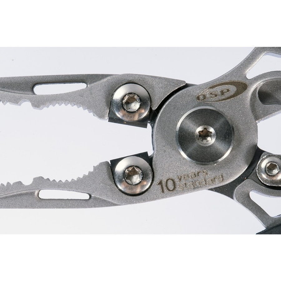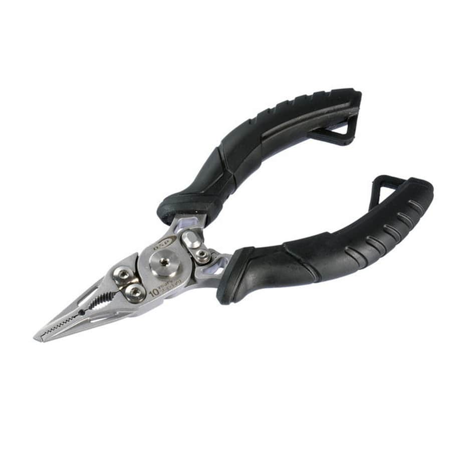 素材はサビに強いステンレス素材を採用。表面には汚れが付きにくい加工を施し、プライヤー先端は、#0のスプリットリングも交換作業ができる仕様となっております。全長は128mmとタックルケースやバッグのポケットなどにも収まりやすい携行にも便利なコンパクトサイズ。さらにPEラインもスパッと切りやすいタングステンカッター装備し、グリップは、右利きでも左利きでも握りやすいフィットグリップ。グリップエンドの両サイドには、リングホールが付いており、脱落防止コードなどの取り付けも可能。また、連続操作もサポートする自動的開き&ロック機能も装備。シンプルな見た目の中にも、これ1本で万能に使える基本性能が盛り込まれたプライヤー。バスフィッシングからライトソルトゲームまで、幅広いシーンで重宝する1本です。