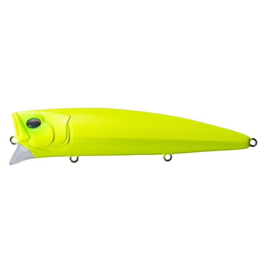 モーゼ145Fはターゲットをトップレンジに誘い出して食わせることにこだわった表層特化型ウェイクベイトである。一般的なボディとウェイトで出せるピッチを超えるべく、軽量ハニカムスーパーHPボディと突き詰められたラインアイ・ウェイト配置によりタイトハイピッチロールアクションを実現。更に、体高を持たせた強反射を生み出すフラット面に近いボディ 形状からくる明滅と、フラッシングでターゲットに猛烈アピール。デッドスローからミディアムファストリトリーブまで軽快な引き心地で引き波を立てて泳ぐ。流れやリトリーブスピード の変化でヒラを打ち、食わせの間を与えるなどの基本性能の追及はもちろんのこと、あえて表層をキープして常に水流を纏いながらシルエットをぼやけさせることで、 デイゲームやクリアウォーター等のルアーを見切られやすい状況でも思わずバイトさせてしまう。また、ロッドアクションでポッパーのように使用することも可能。ポップ音と内臓された大型スチールボールによるラトル音で、遠くの魚や深いレンジの魚にも気付かせバイトに持ち込む。★全長:145mm
