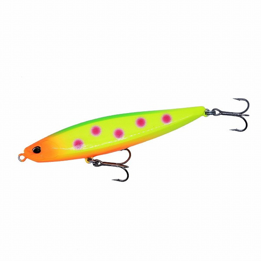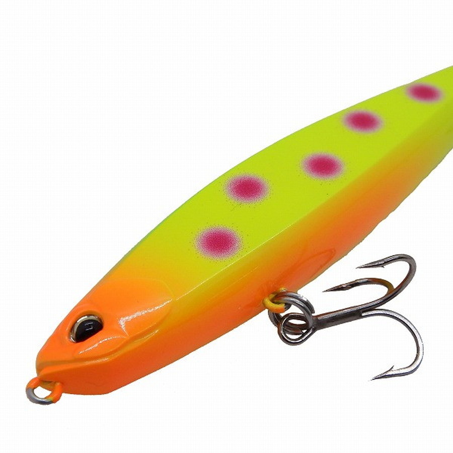 全長:80mm 重量:8.0g フック:#8 リング:#2.0 ※使用するスナップサイズ、リーダー号数、または、水域の塩分濃度によっては、シンキングになることもあります。 ※実物と色が違って見える場合があります。あらかじめご了承下さい。