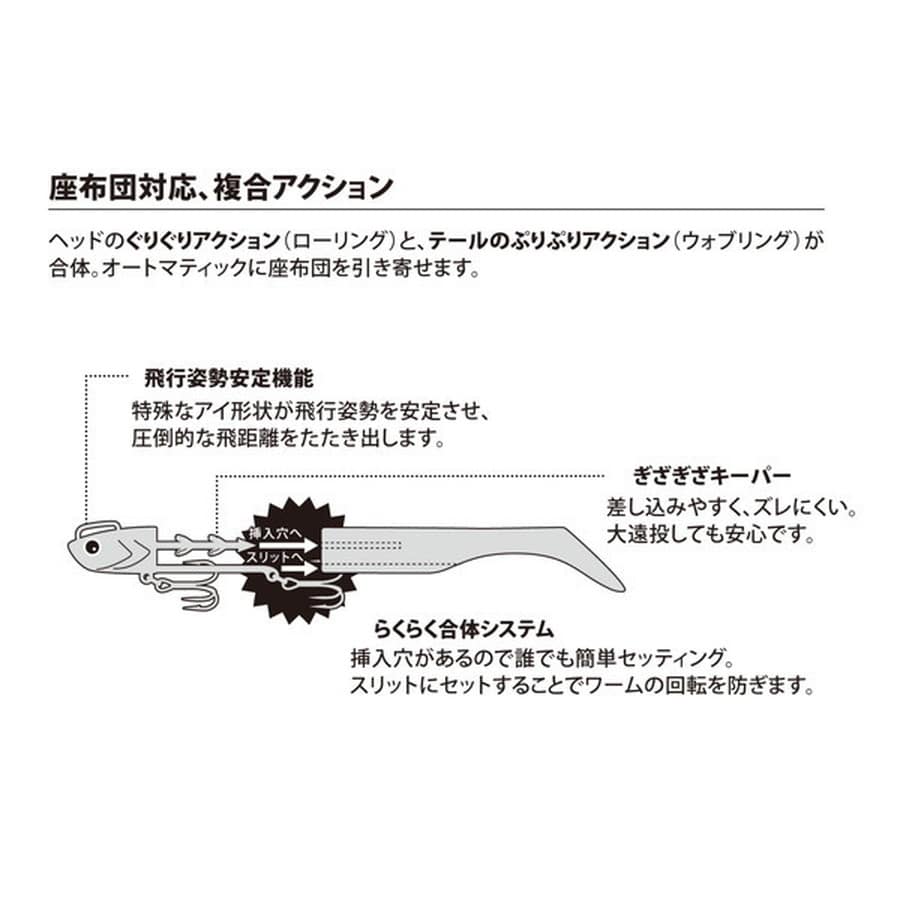 圧倒的な飛距離で広範囲に探るフラットゲーム専用ジグ「ジグパラサーフ」と対照的にフラットフィッシュが潜むポイントを丹念に探ることが可能なルアー「浜王」です。飛行姿勢と泳ぎを重視した専用ヘッドに専用ワームとのコンビネーションは、まさにBEACH KING!! 激戦区のポイントでぜひ投入してほしい自信作です。 ヘッドのグリグリアクション(ローリング)とテールのプリプリアクション(ウォブリング)が合体。 オートマティックに座布団を引き寄せます