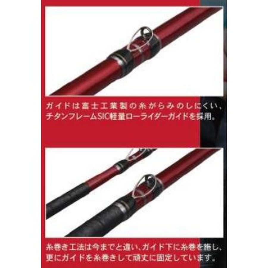 しなやかさを身に纏い細く・軽く、そして強く。竿全体は、ワインレッドカラーで、チタンガイドを装備して軽量化。シートは、富士工業製のロングナットを採用し、リールをしっかりと固定。腹当は、高級カリン材を使用し、 口金と引手金具は、チタン製を採用。