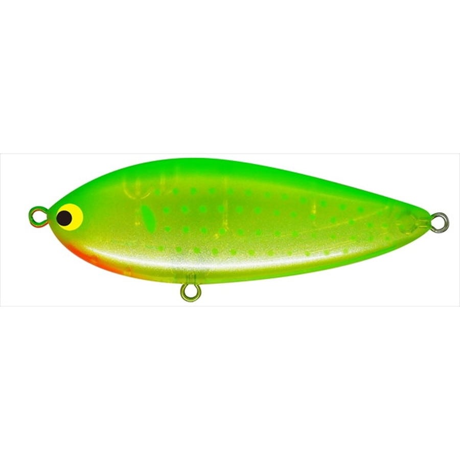S字スイムとジグザグアクション/静と動の両極アクションのヴァリアブルスイムベイト。シンプルな扁平ボディと最小限のウエイト設定によるスローシンキングタイプのリップレスミノーでありながら、スローからファーストと幅広いリトリーブスピードでの使用が可能。 スローリトリーブではゆったりとしたS字スイムを基調とし、流れを釣る『ドリフト』と称されるテクニックに最適。 反対に高速リトリーブでは一般的なシンペンとは比較にならない安定感を持つ為、スロージャークでのジグザグアクションによる高いリアクション効果も期待できます。 「流して良し・巻いて良し・動かして良し」のヴァリアブルスイムベイトと呼ぶに相応しいプラグとなっています。★SIZE:100mm WEIGHT:35g TYPE:SINKING RANGE:30~100cm HOOK:#3 RING:#4