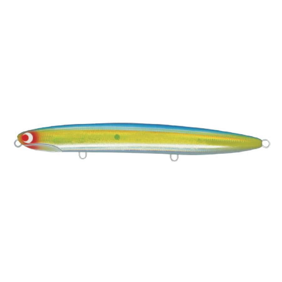 重量級後方重心のスリムボディによる抜群の遠投性と、バックスライドフォールによる速やかな沈降+ラインテンションによりフラッシングの強度もコントロール可能なヘビーウエイトジグミノータイプ。 リトリーブを開始すれば素早く浮き上がり、艶めかしいスラロームスイムを披露。また細身のジグミノーとしては珍しく、ロッドワークへのレスポンスに優れているため、リトリーブ中にトゥイッチを加える事で左右へのスライドやヒラウチも可能とします。 単調になりがちなジグミノーには真似し難い能力でサーフのフラットフィッシュから外洋のシーバス・青物と幅広く活躍します。