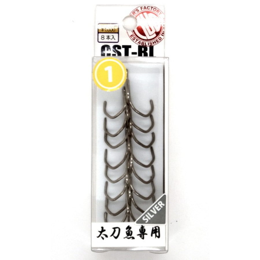 CST-BLはタチウオジギング用テールフックとして開発されたバーブレス・トレブルフックです。タチウオジギングに使用するトレブルフックに求められるのはフッキング力とホールド力。CST-BLはフッキングの成功率を高めるため、タチウオの口に合わせたアイとポイントの位置関係を研究し、最適な角度と距離に設定。さらに針先をストレートにすることによりフッキング時のパワーロスを軽減しています。また3つの角で構成された独特なフック形状はファイト中のスベリを軽減するとともに魚がフトコロの最も深い部分で固定されるため抜け難く、高いホールド性能を発揮します。