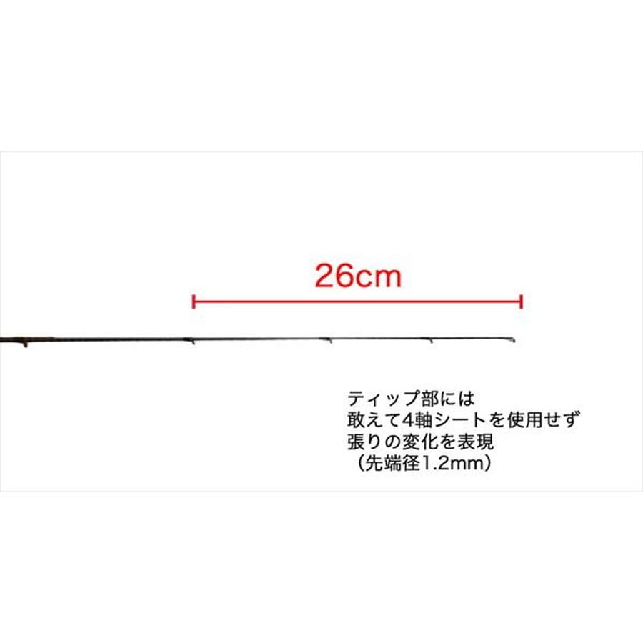 ・Length :6ft2inch・Section:2pc・Weight:62g・Close:97cm・Tip type:Tubular・Top Dia:1.2mm・Lure:0.8g~20g・Line:0.3~0.8(PE)・Guide:8個(全てTORZITE)
