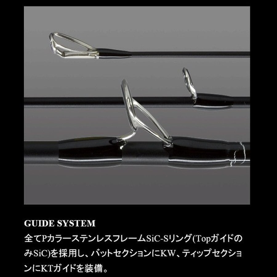 全てPカラーステンレスフレームSiC-Sリング(TopガイドのみSiC)を採用し、バットセクションにKW、ティップセクションにKTガイドを装備。