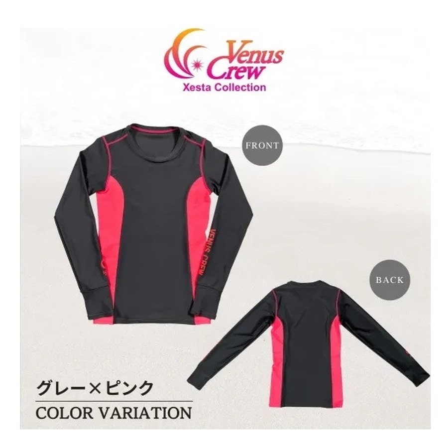VenusCrewからラッシュガードが新発売!日差しから肌をガードしてくれる女性のマストアイテムです。なめらかで伸縮性がありサラッとした着心地で指穴付きなので手の甲までしっかりと紫外線から守ってくれます。また女性のボディラインを美しく見せる3Dカットでかっこよく綺麗に着こなすことができます。Venus Crewトレンカと合わせて着ることでより快適でおしゃれに着こなすことができます。