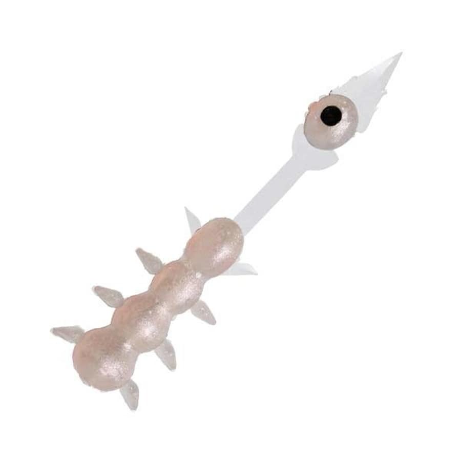 豆アジングやライトゲームにおける超喰い渋り時に絶大な効果を発揮する1.2インチサイズのマイクロワーム。4連に連なったボール状のボディーに神テールシステムで繋がった単体のボール状のテールによりわずかな水流やアクションにも応答し喰わせる能力を持つ。テールとの接続部分が透明化することで弱々しい波動を出しつつ水中ではさらに小さいシルエットでアプローチが可能になることで思わず魚が口を使う。徹底的に喰わせることにこだわった「イクラ虫」はライトゲームの常識を一新する。