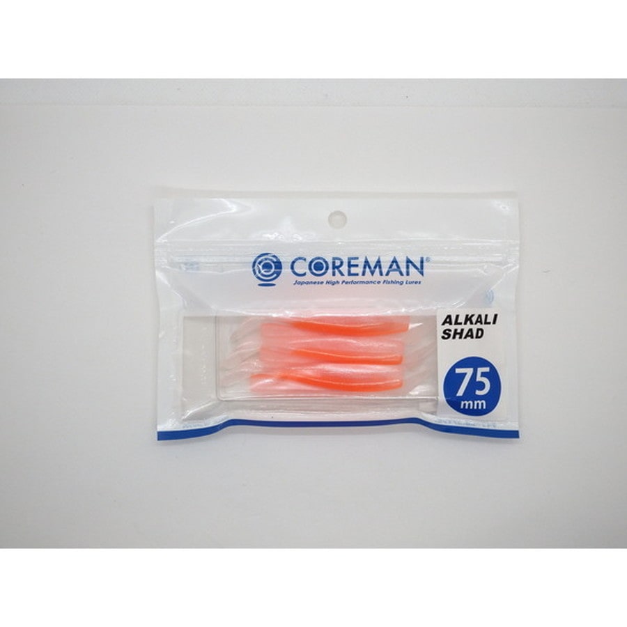 アルカリの特徴的なソリッドボディはそのままに、現場でテストにテストを重ねて到達したテールデザインは、その大きさと幅、厚さ、角度にもこだわっています。意図的にボディをややショート化していますので、テール部からくる波動がボディ全体に伝わりやすく、それによって適度にローリングアクションを発生し、高い集魚効果を発揮します。また、VJとRJの純正トレーラーワームにもなっています。そのマッチングでの破壊力はもう説明不要でしょう。長年の経験と長時間のテストを経て導き出された、コアマンデザインのシーバス特化型ワームです。★全長:75mm