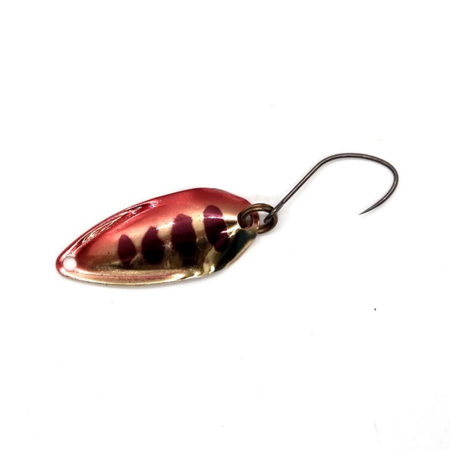 丸湖スプーンは全て水受けを最大限生かした構造と後方重心に寄り水受けのラジアル性と遠投性ディスタンス性に特化して居る製品に成っております。1.7gコンペティションは普通はブランクの厚みを上げるとスプーンのアクションは落ち着くのが本来ですが、あえて1.2g コンペティションに比べてハイアピールにセッティングして有ります。小型スプーンでもう少しロングディスタンスを可能にしたけど放流の活性の高いトラウトを取り安くしたのが1.7g コンペティションです。1.2g コンペティションとの使い分けを楽しんで戴けると幸いです。また2.0g クラスのアフターにも使い分けして戴くと楽しく釣りが出来ると思います。★重量(g):1.7