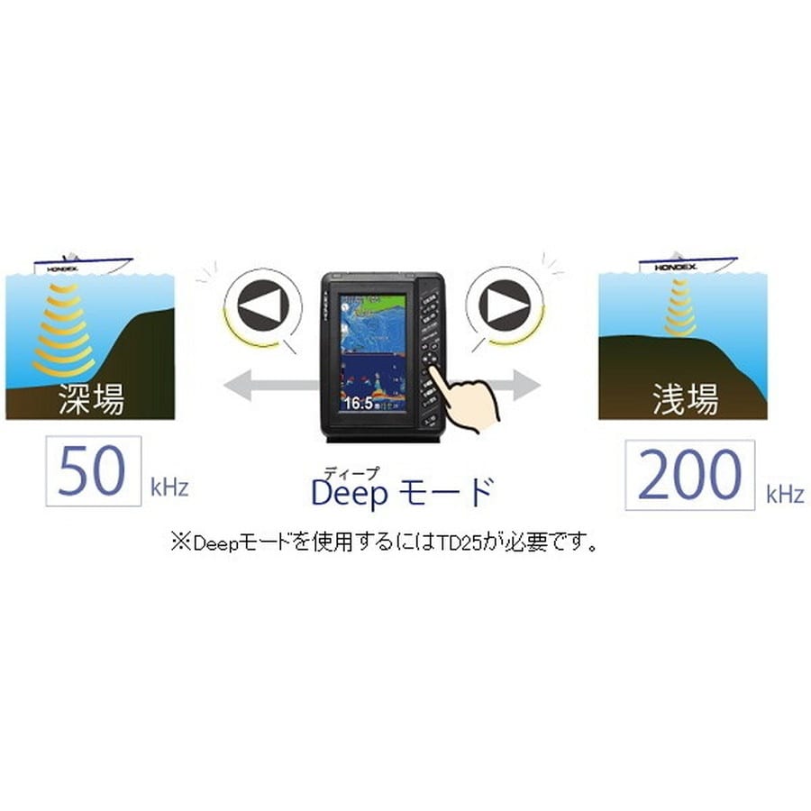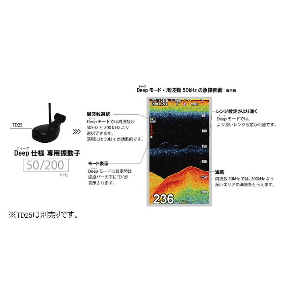 表示レンジ:ノーマルモード時(最大0~300m、最小0~2m)、ディープモード時(最大0~500m、最小0~2m)※Deepモードを使用するにはTD25が必要です。