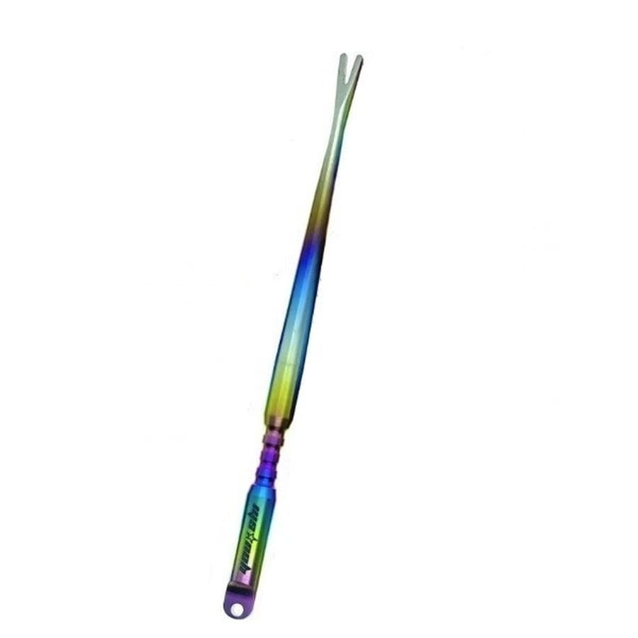 チタン材をマシンカットした、あの針ハズシがバージョンアップ!永久に使える堅牢性と美しさを備えた逸品。●つまみやすくする為、つまみ部をシェイプさせました。●針を押す溝部を5mm→7mmにし、押した針が外れ難くなりました。●約15%重量を軽減。●レーザーマーキングにて「YOU☆SHI」を刻印しました。★サイズ:110mm