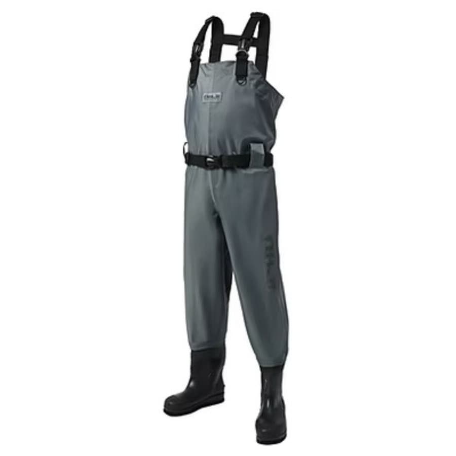 胸まで覆う万能型のチェストハイウェーダー。 胸元まで丈があるため、深い水深から浅瀬まで、海や川など、あらゆる釣り場でオールマイティーに使用できる定番のウェーダーです。 シーバス釣りで深場に立ち込む際や、湖でのトラウト釣りにも最適です。 軽量で通気性に優れた70Dデニール生地。 通気性が良く着脱も容易なインナーメッシュ仕様 。耐久性のあるPVCブーツ。 かかと部分には突起形状のキックオフが備えてあり、容易に着脱が可能。★サイズ:M