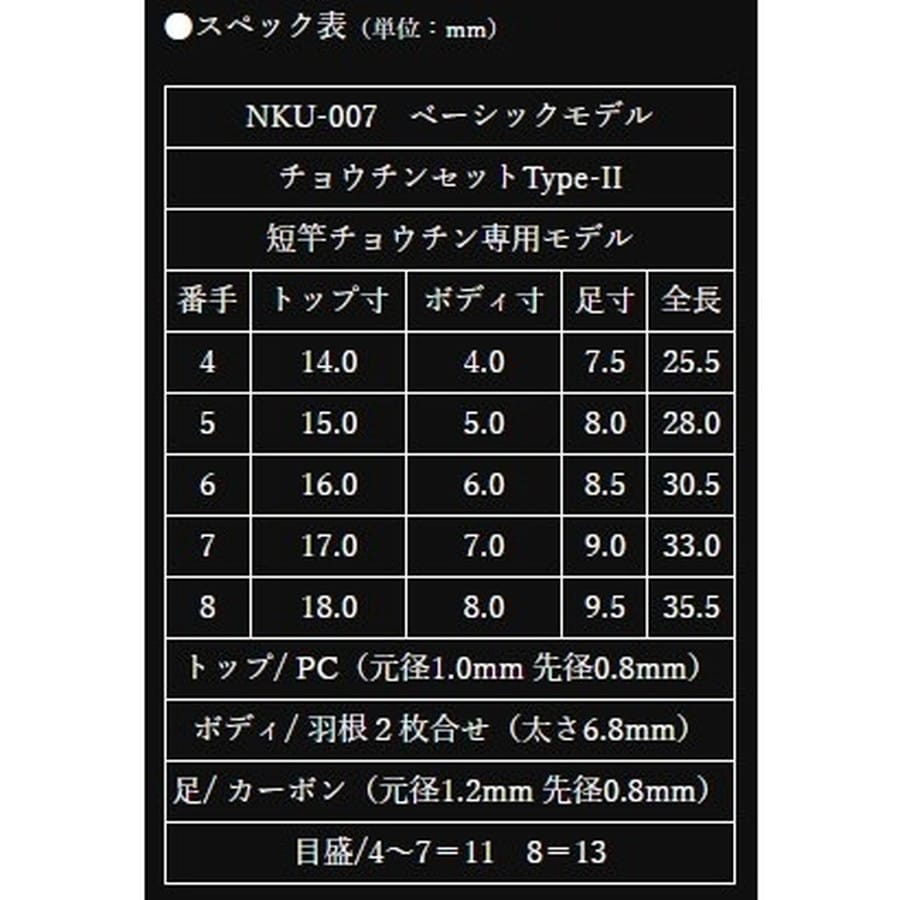 短竿チョウチン専用モデル。ストロークのあるPC ムクトップにより、馴染み込みの変化を的確に捉えます。両ダンゴでも使用できます。★スペック表(単位:cm) トップ寸:18.0 ボディ寸:8.0 足寸:9.5 全長:35.5 トップ/PC(元径 1.0mm 先径0.8mm) ボディ/羽根2枚合せ(太さ 6.8mm) 足/カーボン(元径 1.2mm 先径0.8mm) 目盛/11