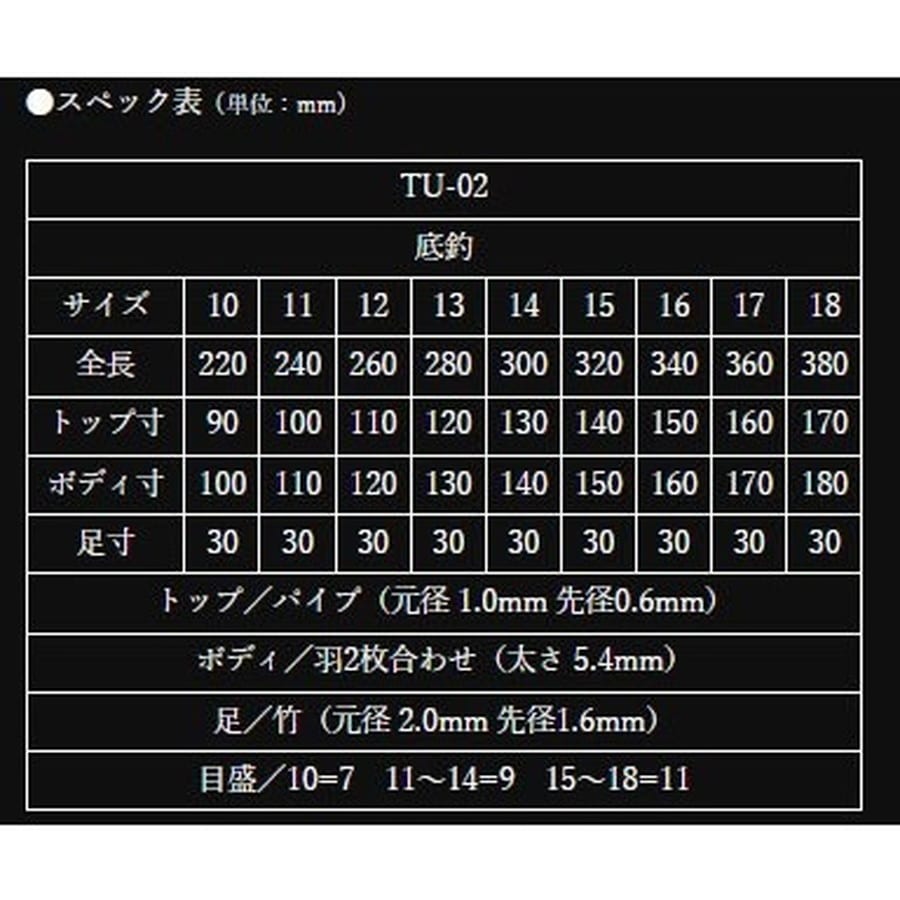 底釣り用のオーソドックスなタイプの浮子です。 年間を通して底釣をするへら師には是非おすすめの一本です。★サイズ:18 スペック(単位:mm)全長:380 トップ寸:170 ボディ寸:180 足寸:30 トップ/パイプ(元径 1.0mm 先径0.6mm) ボディ/羽2枚合わせ(太さ 5.4mm) 足/竹(元径 2.0mm 先径1.6mm)目盛/11