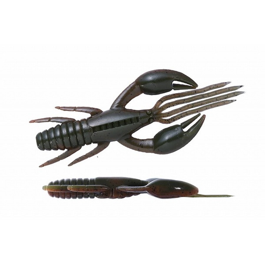 O.S.P初のワーム、「ドライブクロー」は、゛全てのパーツが無駄なく機能し、何時如何なる時でもバスを誘い続ける゛各パーツのそれぞれ異なった動きがMIXすることで生まれる別格の艶かしさはフォール中のバイトを激増させる。着底直後にはボディーに対してハサミとヒゲが遅れてスローに倒れ込む時間差アクションが発生してバスを魅了し、その後の様ーなパターンの誘いでもパーツのどこかが常にバスを誘い生命感を失うことはない。まるで生きているかのような蠢き(うごめき)と疑いなき強烈なバイトを体感してほしい。