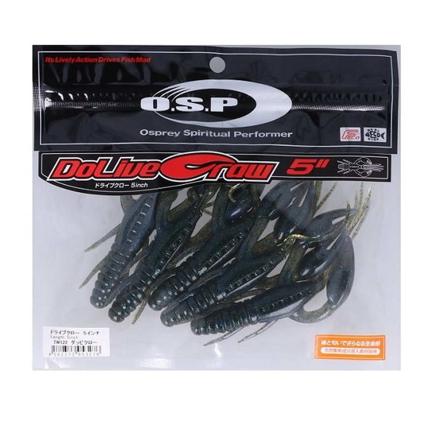 O.S.P初のワーム、「ドライブクロー」は、゛全てのパーツが無駄なく機能し、何時如何なる時でもバスを誘い続ける゛各パーツのそれぞれ異なった動きがMIXすることで生まれる別格の艶かしさはフォール中のバイトを激増させる。着底直後にはボディーに対してハサミとヒゲが遅れてスローに倒れ込む時間差アクションが発生してバスを魅了し、その後の様ーなパターンの誘いでもパーツのどこかが常にバスを誘い生命感を失うことはない。まるで生きているかのような蠢き(うごめき)と疑いなき強烈なバイトを体感してほしい。★ワーム・スイムベイト:全長
