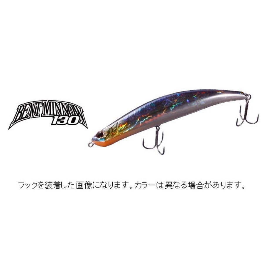 ベントミノー130は、20gの自重と飛びを重視したボディデザインにより広大なウィードエリアでもベイトタックルにて充分な飛距離が得られる。また太いラインでも抜群の操作性を誇りカバー周りでのライブリーな誘いと強引なやり取りを両立した。大型ベイトにマッチザベイトのボリューム感ながら、サイズを感じさせない軽快さとキレのあるダートやダイブ、さらに水面に飛び出してスプラッシュを弾き飛ばし広範囲に、しかもディープレンジにまでアピールする。また湾曲ボディはあらゆる角度から光をとらえて反射しやすく、激しいくねりアクションと相まって目まぐるしい明滅効果のあるフラッシングを見せる。その泳ぎは曲線的でイレギュラー、使い手もバスもどちらにダートするか分からない予測不能のナチュラル3Dダートアクションを発生。バスに追われて逃げ惑い、食われる間際のベイトフィッシュのパニックアクションをリアルに再現する。連続トゥイッチすればバスの目に正確に捉えられることなく撹乱し続け、イレギュラーな動きで瞬間的に視界から消えバスを熱くさせる。