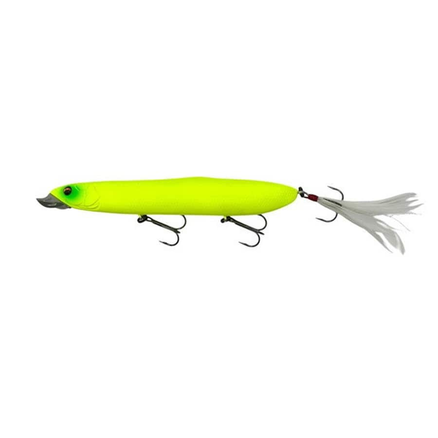 スプラッシュ&スプラッシュ攻めに特化したジャギマウス。特徴は大きく張り出した極薄金属カップで、水面を切り裂き、激しいスプラッシュでフィッシュイーターに追われ水面を逃げ惑うベイトフィッシュを演出します。大きなスライド幅、低速テーブルターン、スプラッシュ、高速ドッグウォークをバランスよく発揮するアイアンマウスに対し、ジャギマウスはスライド幅を抑え、全速度域で、より激しいスプラッシュを得意としています。スプラッシュ製造に特化された金属リップから発生する飛沫は最大飛距離が優に1mを超えます。