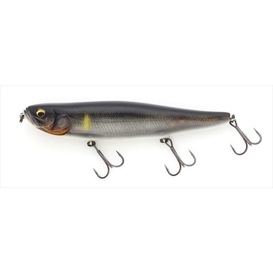 狡猾で用心深いフロリダバスをもキレさせるハイトーン金属サウンド、そして、強烈な水推しパワーを発揮するパワフルドッグウォーク。広大なビッグレイクのモンスターバスを水面ハイスピード攻略する切り札、それがスラムドッグ・モンスターです。池原ダムのモンスターハンターとしてその名を知られる黒崎健一氏の熱烈なリクエストに応えて開発されたスラムドッグ・モンスター。145mm40gのビッグボディーながら、長時間連続使用しても疲れ難い軽快な操作性、強い水推しと黒崎氏がこだわり抜いた金属クラッカーサウンドによる高い集魚能力を兼ね備えたモンスター専用ビッグペンシルベイトです。