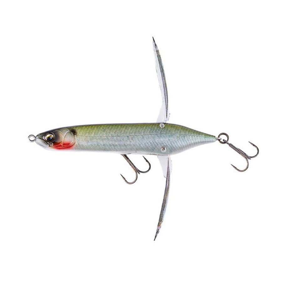アベンタクローラー・バゼルは、デッドスローを極めたアベンタクローラーRS最大の特徴である最後方設置リアウィングを継承し、デッドスローのみならずピクピクアクション、さらにはバズベイト並の高速リトリーブにも追従する新機軸のフィネスクローラーベイトです。強化プラチック製の透明ウィングを装備したそのシルエットはまさに小鮎、ワカサギなどの小型ベイトフィッシュそのもの。小型軽量ルアーながら安定した飛行姿勢で、抜群の直進性と飛距離を実現しています。水面で瀕死のワカサギを演出するピクピクアクションや、サイトフィッシングでの移動距離を抑えた一点シェイクで、オリジナルRSウィングならではのナチュラルで強力な喰わせ能力を発揮します。アベンタクローラー・バゼルはその小さなボディーと絶妙の角度を持たせたRSリアウィングを存分に生かして、広範囲を高速サーチできる『高速巻き』にも対応。この『高速巻き』はスレ切ったクリアレイクでは特に有効で、まるでリアルなバズベイトのようにスピーディーに広範囲からバスを引き寄せます。