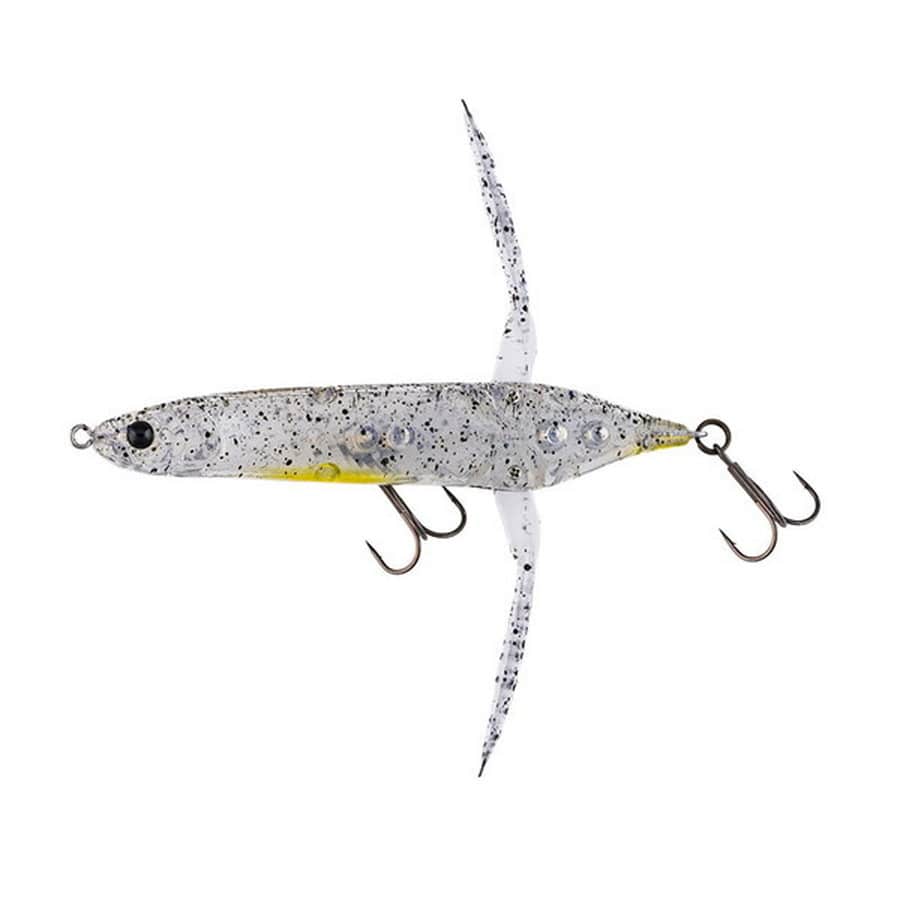アベンタクローラー・バゼルは、デッドスローを極めたアベンタクローラーRS最大の特徴である最後方設置リアウィングを継承し、デッドスローのみならずピクピクアクション、さらにはバズベイト並の高速リトリーブにも追従する新機軸のフィネスクローラーベイトです。強化プラチック製の透明ウィングを装備したそのシルエットはまさに小鮎、ワカサギなどの小型ベイトフィッシュそのもの。小型軽量ルアーながら安定した飛行姿勢で、抜群の直進性と飛距離を実現しています。水面で瀕死のワカサギを演出するピクピクアクションや、サイトフィッシングでの移動距離を抑えた一点シェイクで、オリジナルRSウィングならではのナチュラルで強力な喰わせ能力を発揮します。アベンタクローラー・バゼルはその小さなボディーと絶妙の角度を持たせたRSリアウィングを存分に生かして、広範囲を高速サーチできる『高速巻き』にも対応。この『高速巻き』はスレ切ったクリアレイクでは特に有効で、まるでリアルなバズベイトのようにスピーディーに広範囲からバスを引き寄せます。
