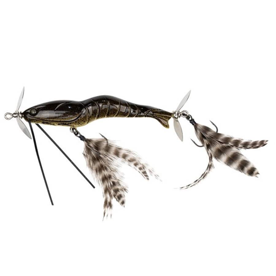 フェザーフックにも意味があり、フロントはエビの腹肢を表現しながらリアのフェザーと共に安定した水平姿勢キープに貢献。ヘッドアップを防ぎ、水平姿勢をキープすることに重点を置いたことで超高速で巻いても全く破綻せず、抜群の安定感で真っ直ぐ泳ぎ続けます。巻き感、引き感をはっきり感じられるから巻き続けられるi字形シンキングダブルスイッシャーです。★全長:70mm