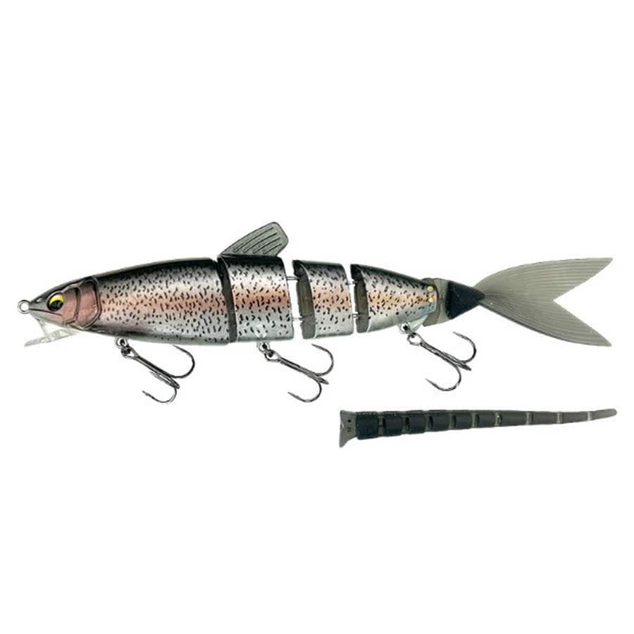 ジャバロンの柔らかくなめらかな生命感にハードベイトならではの力強い水押しとトリプルフックによる高いフッキング率がプラスされたジャバロンハード。復刻以来、十数年前にできたルアーとは思えない釣果を叩き出し、一躍、スタンダードスイミングワームとして返り咲いたジャバロン。しかしジャバロンにも弱点があります。それはワームがゆえの集魚力とシングルフックのステルス効果と比例するフッキング率。オープンウォーターやカレントの中でジャバロン唯一のアクションでハードベイト並みの強い集魚力とキスバイトさえ掛けることができたら…。この悩みに対する飽くなき探究心で生み出されたのがジャパロンハードです。テールもプラスチックからエラストマーに変更し、スネークテールとジャバロンテールの2種類が付属しています。