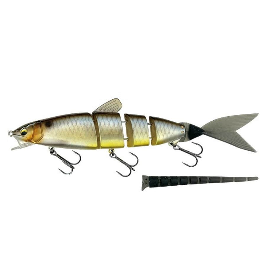 ジャバロンの柔らかくなめらかな生命感にハードベイトならではの力強い水押しとトリプルフックによる高いフッキング率がプラスされたジャバロンハード。復刻以来、十数年前にできたルアーとは思えない釣果を叩き出し、一躍、スタンダードスイミングワームとして返り咲いたジャバロン。しかしジャバロンにも弱点があります。それはワームがゆえの集魚力とシングルフックのステルス効果と比例するフッキング率。オープンウォーターやカレントの中でジャバロン唯一のアクションでハードベイト並みの強い集魚力とキスバイトさえ掛けることができたら…。この悩みに対する飽くなき探究心で生み出されたのがジャパロンハードです。テールもプラスチックからエラストマーに変更し、スネークテールとジャバロンテールの2種類が付属しています。