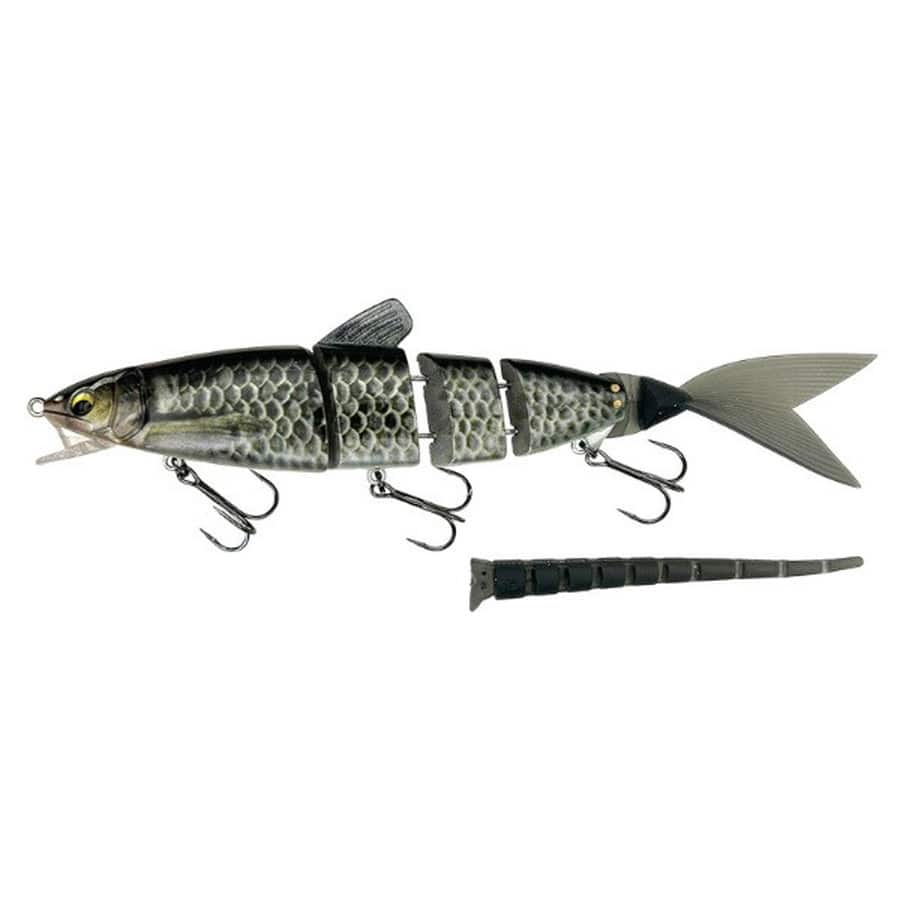 ジャバロンの柔らかくなめらかな生命感にハードベイトならではの力強い水押しとトリプルフックによる高いフッキング率がプラスされたジャバロンハード。復刻以来、十数年前にできたルアーとは思えない釣果を叩き出し、一躍、スタンダードスイミングワームとして返り咲いたジャバロン。しかしジャバロンにも弱点があります。それはワームがゆえの集魚力とシングルフックのステルス効果と比例するフッキング率。オープンウォーターやカレントの中でジャバロン唯一のアクションでハードベイト並みの強い集魚力とキスバイトさえ掛けることができたら…。この悩みに対する飽くなき探究心で生み出されたのがジャパロンハードです。テールもプラスチックからエラストマーに変更し、スネークテールとジャバロンテールの2種類が付属しています。