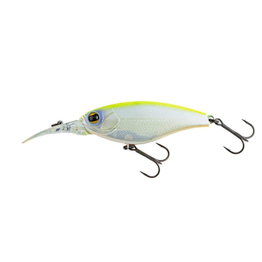 S-100は潜行深度最大1~1.5m。アクションはイマカツ独自のワインドビルを装備し、潜る力を左右の動きに変換、柔らかく強い波動を発生する集魚力優先タイプ。比較的ロングリップながら深く潜らず、障害物の回避性能もショートビルを遥かに超えており従来のシャッドでは攻略が難しかったゴロタエリアなどでもシャロークランクと同じように攻めることが出来ます。またウィードエリアでの釣りにも向いており、使い方としては時折ウィードに引っ掛けてポーズを取り、そして外すの繰返しです。ウィードを外した瞬間のリアクションでバスがバイトします。そしてこの時、アベレージが小さいフィールドやプレッシャーなどでクランクではショートバイトで終わってしまうバスもシャッドであればシャープなボディがフックポイントを隠すことなくフックアップに持ち込むことが出来ます。ワインドリップ装着ながら、優れたエアロダイナミクスを計算されており、その距離はまさにカッ飛びシャッドの名に相応しいものです。