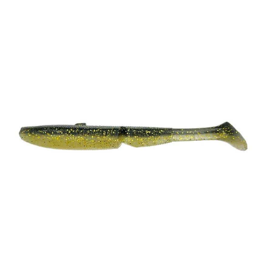 浮き上がりを徹底的に抑制、ノーシンカーでボトムを巻ける。「MJシャッドテールに求めたのは、ボトムをデッドスローで巻けてきっちりアピールできる性能です。それができればシャッドテールはそもそも浮き上がりやすいルアーなので、表層で使いたいときは少し速く巻けばいいだけ」。ジョイント構造にしているのも、ジョイント下部に水を受ける構造も、すべては浮き上がらせにくい性能をもたせるためのデザイン。そして目を引くのがテールの小ささと肉厚さ。「デッドスローリトリーブ時のテールレスポンスを求めたらテールの付け根はあまり薄くせず、テール自体を薄くか小さくするべきなんです。ステルススイマーは薄くして、レスポンスをよくしてキックは弱め。MJはそれとは逆の小さくて強いキックを求めたんです。なにかにコンタクトして抜いた直後のプルプルプルという波動を出せるようにしています」。