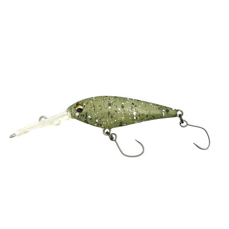 「イマカツ流でかマスの極意はボトムジャークにあり」管理釣り場に通いこんでいた頃、デカくて賢いトラウトほどボトムを利用したリアクションが有効だと気づきました。しかしルアーを水ごと吸い込むバスとは違い、噛みつくバイトのトラウトはボトムでは掛かりにくい。この経験から生まれたのがマス用ボトム特化型シャッド『マイク口鱒マックス』です。リップ先端のハンガーに0.9g前後のシンカーを装着することでフックを浮かせたボトムステイやソフトジャークに対応できます。リトリーブではウォブルアクションが発生し、シンカー装着時にはロールアクションへと性格が変化します。IK独自のC.B.S.を搭載し、シングルフックとの相乗効果で同クラスシャッドでは異例の鋭いダートを実現。空気抵抗を抑えたボディ形状により、重心移動非搭載ではあり得ないほどの高いキャスタビリティも確保しています。