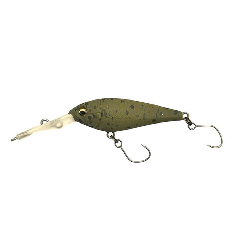 「イマカツ流でかマスの極意はボトムジャークにあり」管理釣り場に通いこんでいた頃、デカくて賢いトラウトほどボトムを利用したリアクションが有効だと気づきました。しかしルアーを水ごと吸い込むバスとは違い、噛みつくバイトのトラウトはボトムでは掛かりにくい。この経験から生まれたのがマス用ボトム特化型シャッド『マイク口鱒マックス』です。リップ先端のハンガーに0.9g前後のシンカーを装着することでフックを浮かせたボトムステイやソフトジャークに対応できます。リトリーブではウォブルアクションが発生し、シンカー装着時にはロールアクションへと性格が変化します。IK独自のC.B.S.を搭載し、シングルフックとの相乗効果で同クラスシャッドでは異例の鋭いダートを実現。空気抵抗を抑えたボディ形状により、重心移動非搭載ではあり得ないほどの高いキャスタビリティも確保しています。
