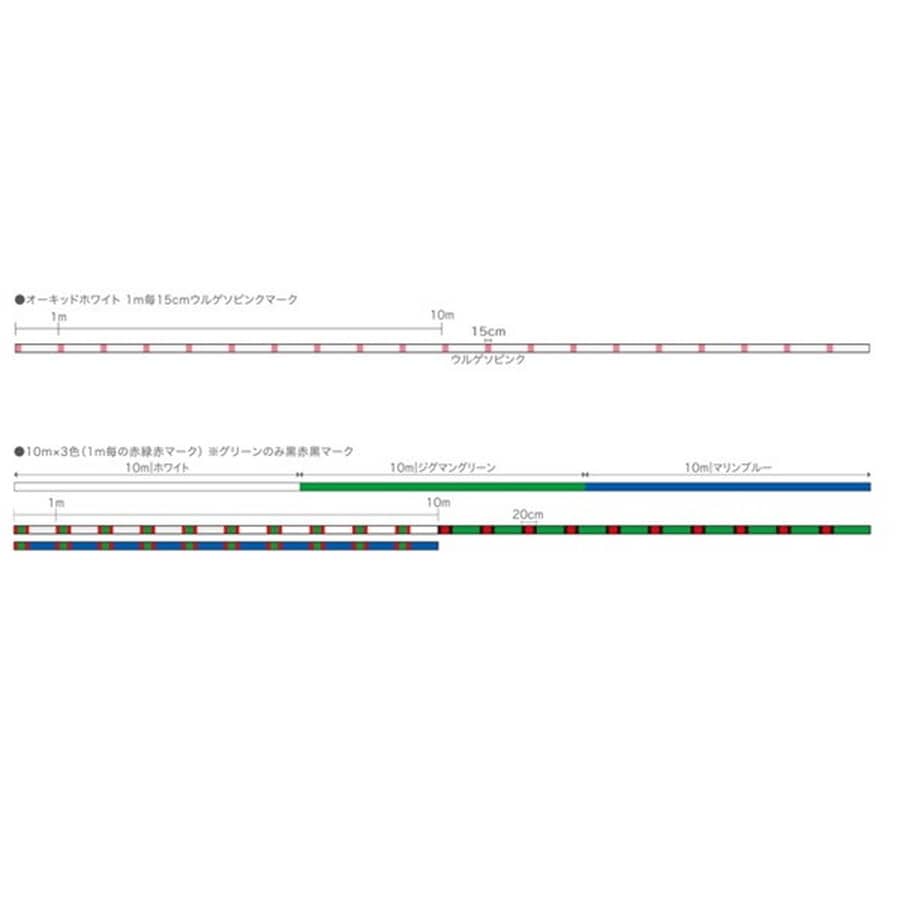 世界最高糸質アップグレード。受け継がれた血統、木魂するスピリット ONE AND ONLY BEST、UPGRADE !高密度ピッチ製法 × WX4工法 × GP加工 × HST加工が可能とした圧巻のパフォーマンス。一般的にPEラインは、高密度にピッチを細かく組み上げると耐磨耗性が上がり直線強力が落ちる。逆に低密度でピッチを粗く組み上げると、糸が直線的になり直線強力が上がり耐磨耗が下がる。X-BRAID UPGRAD はその相反する性能の両方を世界最高レベルで実現し、(社)日本釣用品工業会釣糸部会制定の「PE糸の太さ標準規格」に準じたオールカテゴリーハイクオリティーハイパワーPEラインです。● カラー:オーキドホワイト1m15cm毎 ウルゲソピンクマーク