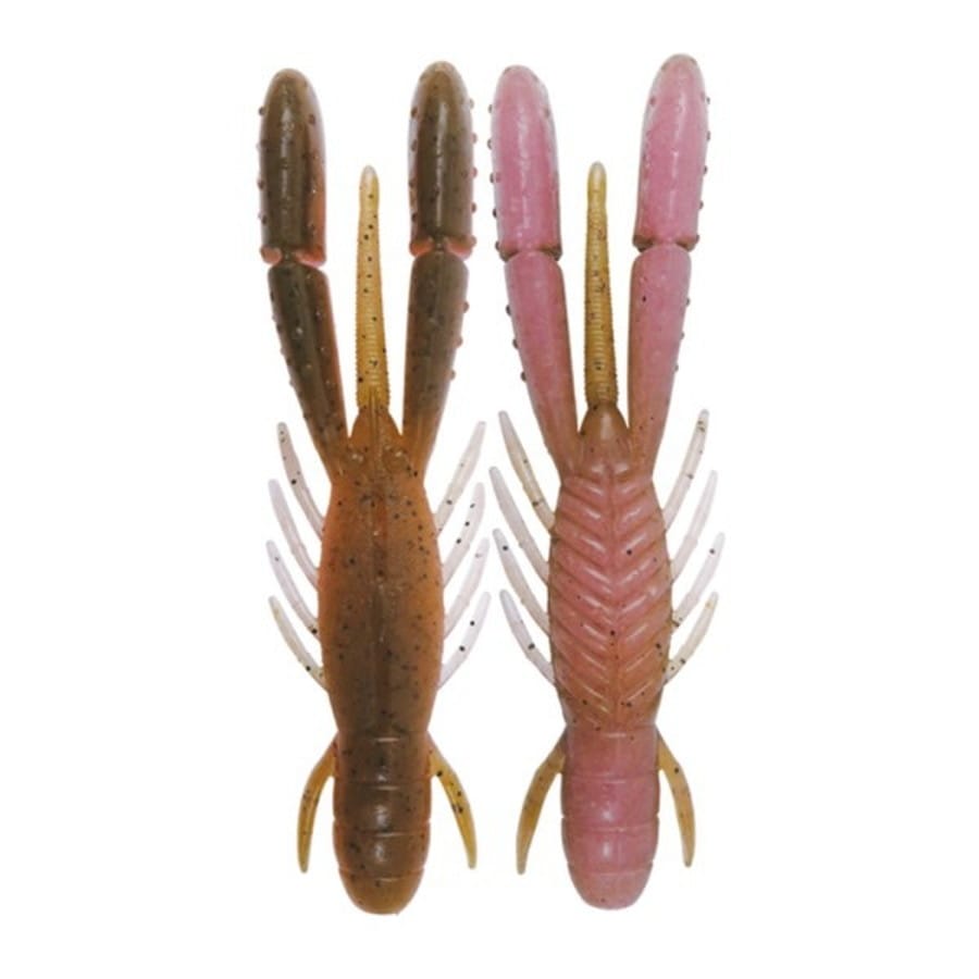独自のスリットインパドルが水をつかみ、左右にブルブルと震えるライブリーアクションを発生。ウチワであおぐような強い水押し波動と相まって、バスの本能を強烈に刺激します。またシェイクなどのロッドワークでもしなやかにスイングし、ホッグ系特有のタテ方向の水押しでアピール。上下左右の異なる刺激でバイトを頻発させます。フラットタイプのピンテールは着底後、パドルが倒れ込んだ後に左右にピリピリと震え、時間差による自発的アクションでポーズ中のバイトを促します。4対のレッグは僅かなロッドワークでもレスポンスよく反応し、ワーム全体の波動を複雑にすることでバスに見切らせにくくする役割を担っています。レッグとは逆向きに設けた1対の逆手は、フォールスピードにブレーキをかけつつハイピッチにバイブレーションし、サスペンドバスのバイトを促します。強い水押しと針もちに優れるやや硬めのマテリアルながら、それを感じさせない柔らかな動きをデザインで実現。比重は、自然な水中姿勢と強い水押しを兼備する塩の含有量を吟味。エビ・イカ・ベイトフィッシュの粉末をトリプル配合。