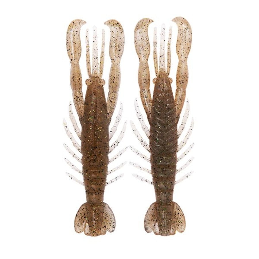 オリジナルシェイプのツメは、フォールやスイミングで高速微振動。ネコリグやスモラバトレーラーによる倒れ込みでは、自発的にウデを開閉する動きでバイトを誘発します。タテ扁平とヨコ扁平を組み合わせたオリジナルシェイプ。シェイクで素早く水を切る動きと、ボディが倒れ込む際に左右に震える複合的なアクションでバイト誘発力アップに貢献します。太さと長さを吟味し、あらゆるリグや誘いで微振動。エビがせわしく水を掻いて漂うさまをリアルにイミテートします。うちわのような尻尾は、水をあおいで水押しを発生。中心線へのフックセットをアシストするスリットには、針先埋め込み用の肉盛り。スナッグレス性能とフッキング性能を両立します。状況に応じてダウンサイジング、もしくは、先端が裂けてしまったときの再利用としてもご活用いただけます。最良のアクションを生み出す硬度と塩の含有量を吟味。腹側は高比重、背中側は中比重とすることでスイミング時の安定性を向上。また、エビ・イカ・ベイトフィッシュの粉末をトリプル配合し、匂いでもバイトを促進します。