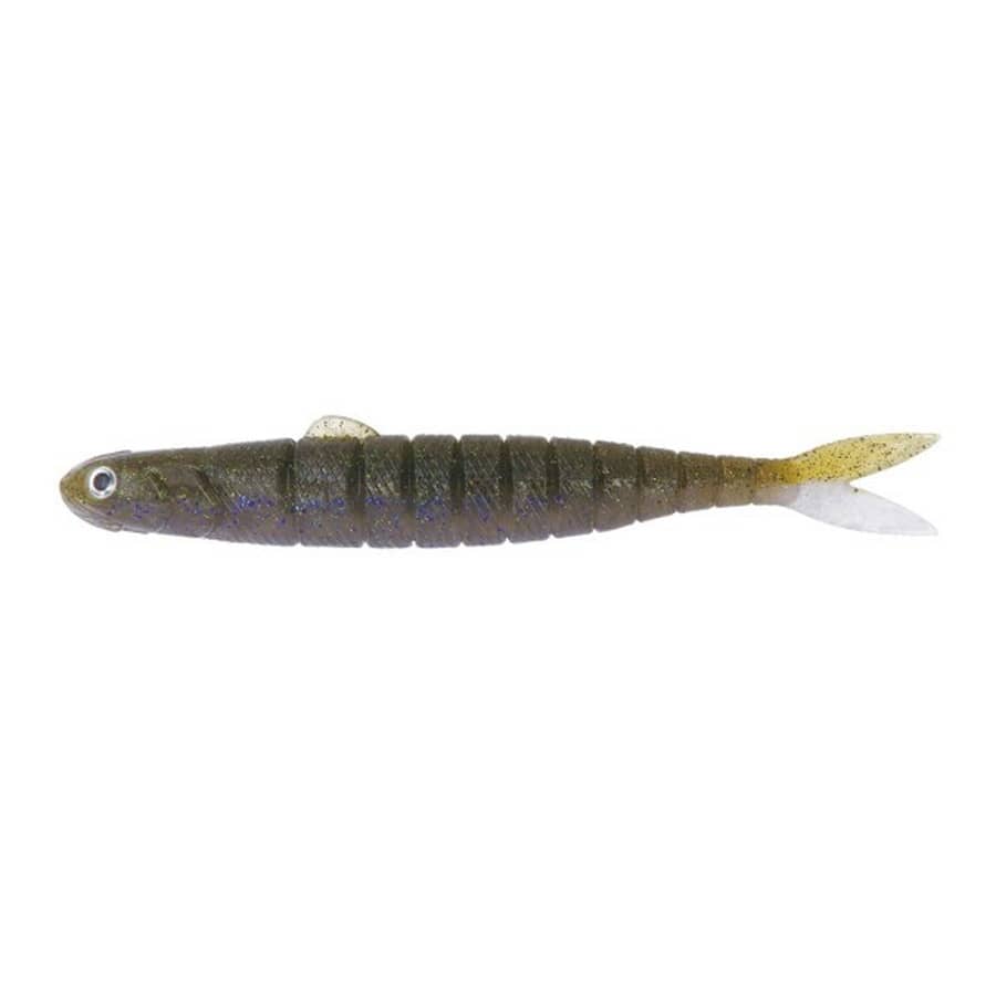 動きも魅せるリアルシェイプミノー。ボディをぐるりと囲む深いリブが、しなやかさと水受けを寄与。ジグヘッドリグによるミドストでは、身のしなりを伴うロールアクションを生み、ストレートリトリーブに切り替えた瞬間から身を振って泳ぐ逃走アクションを演じます。ネコリグにおいても、ボディを柔らかくクネらせ、バイト時には口の中でたたまれやすくなることでワッキー掛けにおいてリスクとなるスッポ抜けを最小限に防ぎます。背と腹に設けたスリットは、あえてフックシャンク長以上の範囲に。ボディを内側からも柔らかく仕上げるとともに、腹側のスリットを深くすることで微かなフラッシングを生じます。ワッキー掛けは、ボディ側面のポッチから刺して背中に抜くのがベストポジション。さらに、針先を背ビレに刺して固定することで、初動からベストアクションを発生するとともに、身切れにくさにも貢献します。バスに“本物”と認識させ、バイトを後押し。特にじっくりと見せる誘い方をするベイトフィッシュタイプにおいてアドバンテージをもたらします。